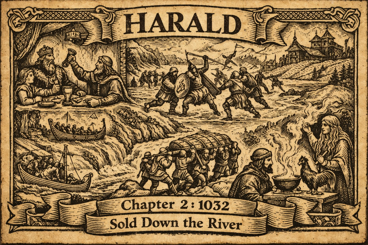 Harald did not approach her. He remained with the men and with the prince’s stewards, learning where the hall’s power lay: not only in the high seat, but in those who counted stores, arranged escorts, weighed silver, and measured loyalty as carefully as grain. He took note of the prince’s brothers and retainers, of who laughed too quickly, of who stayed silent. In Norway, men swore to kings because they were kin or neighbors. Here, they swore because the river carried wealth, and Yaroslav controlled the bends where that wealth passed.